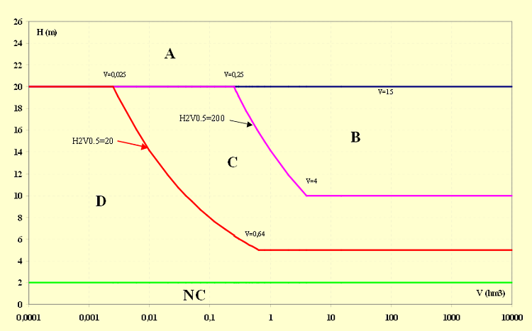Le graphique suivant expose clairement le système de classement du barrage dont cette étude fait l’objet et montre pourquoi ce barrage, s’il devait être construit, serait classé dans la catégorie C.