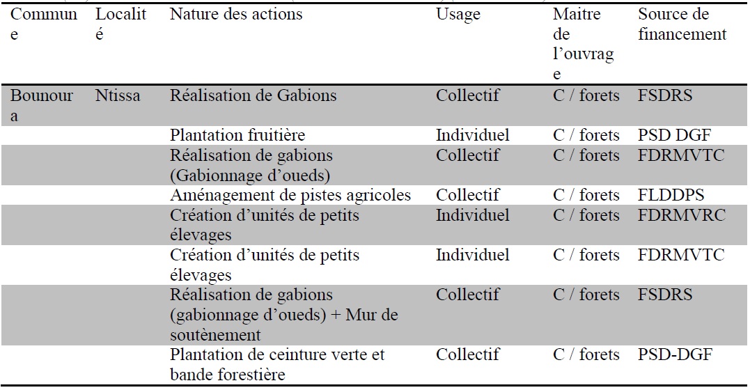 Tableau (18 ) : PPDRI de la localité de NTisa (Commune de Bounoura ) (validé en 2009)