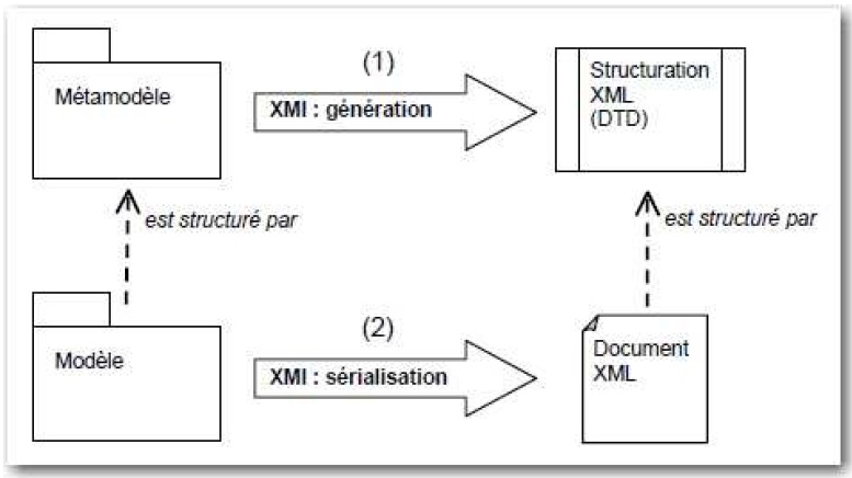Figure 42 : XMI et la structuration des balises XML (Blanc 2005, p.104)