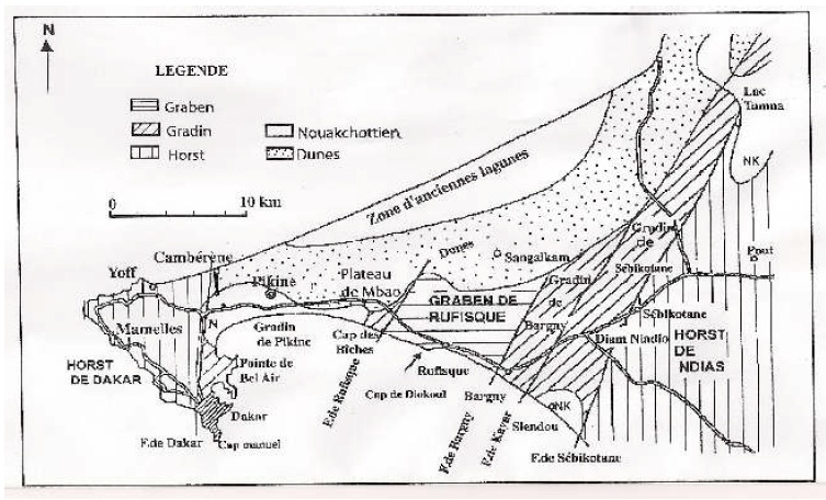 du cap vert avec des affleurements tertiaires de l’éocène inférieure, le graben de Rufisque,