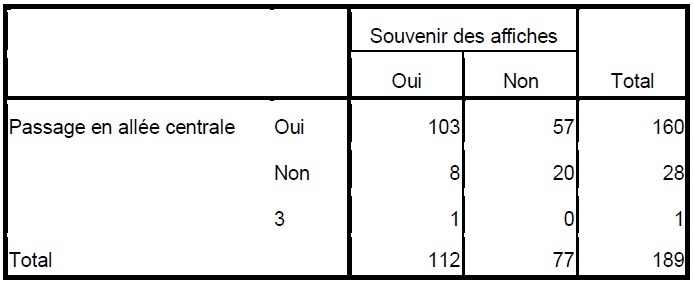 Donc, la perception des affiches n’est pas corrélée au fait que les gens viennent pour chercher des promotions par exemple.