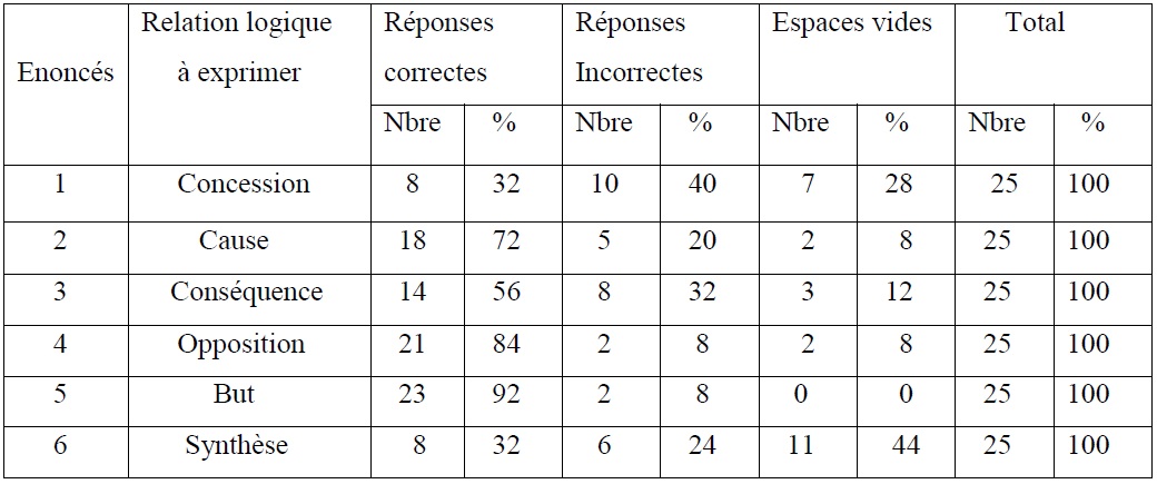 – La synthèse : 6 emplois incorrects ——————> 24%.