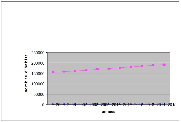 Graphique 1 : évolution de la population rufisquoise de 2005 à 2015