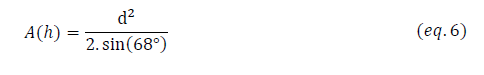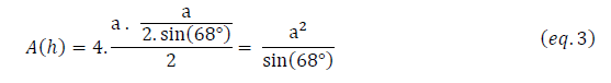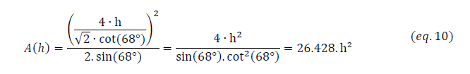 Après la pénétration de l’indenteur à la surface d’un matériau, l’empreinte résiduelle est de forme carrée (figure A.2). L’aire réelle du contact de la pyramide avec le matériau représente quatre fois l’aire du triangle représenté en grisé sur la figure A.2. Ainsi, la fonction d’aire A(h) peut être calculée, géométriquement, comme suit: