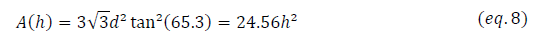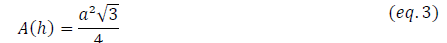 L’indenteur Berkovich est une pyramide à trois faces, dont la base est un triangle équilatéral. Les faces ont une inclinaison de 65,3° par rapport à l’axe vertical. La fonction d’aire A(h) d’un indenteur Berkovich parfait, c’est-à-dire l’aire projetée en fonction de la distance h depuis la pointe, peut être calculée, géométriquement, comme suit: