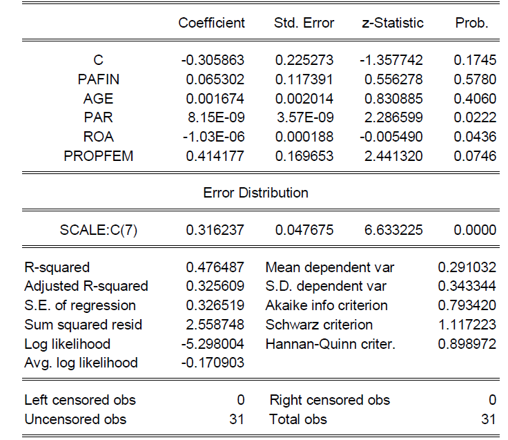 Method: ML – Censored Normal (TOBIT) (Quadratic hill climbing)