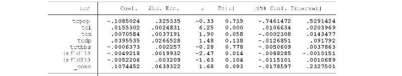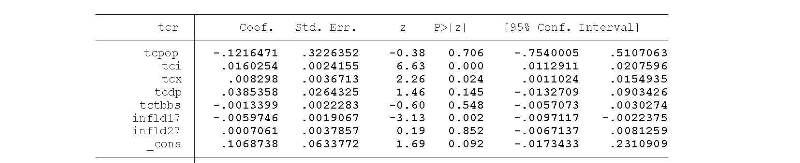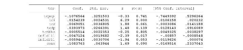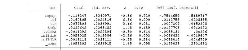 xtreg tcr tcpop tci tcx tcdp tctbbs infld19 infld29,re