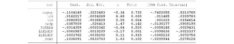 xtreg tcr tcpop tci tcx tcdp tctbbs infld18 infld28,re