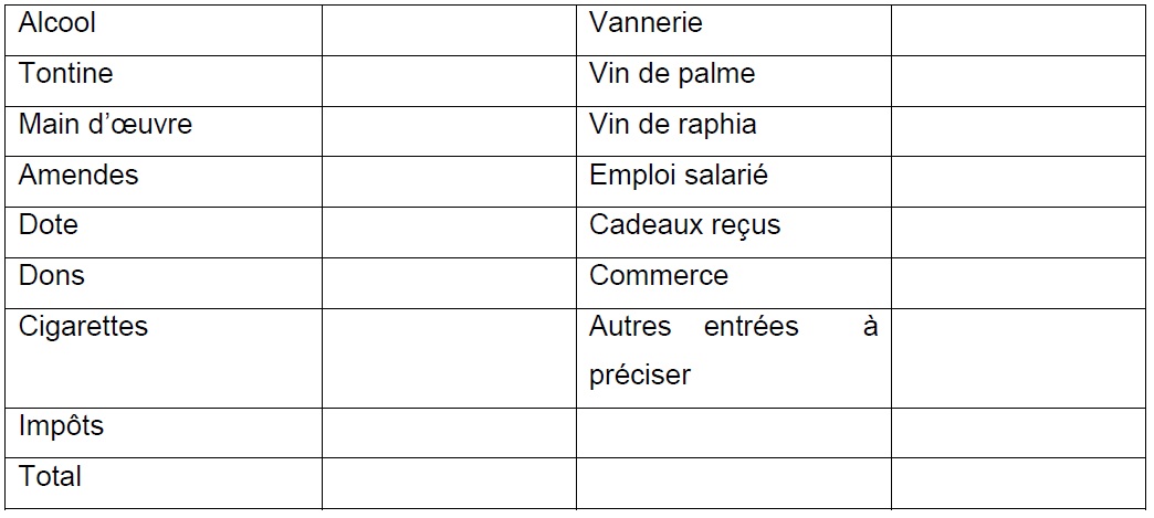 Tableau récapitulatif des recettes et dépenses du ménage (en FCFA)