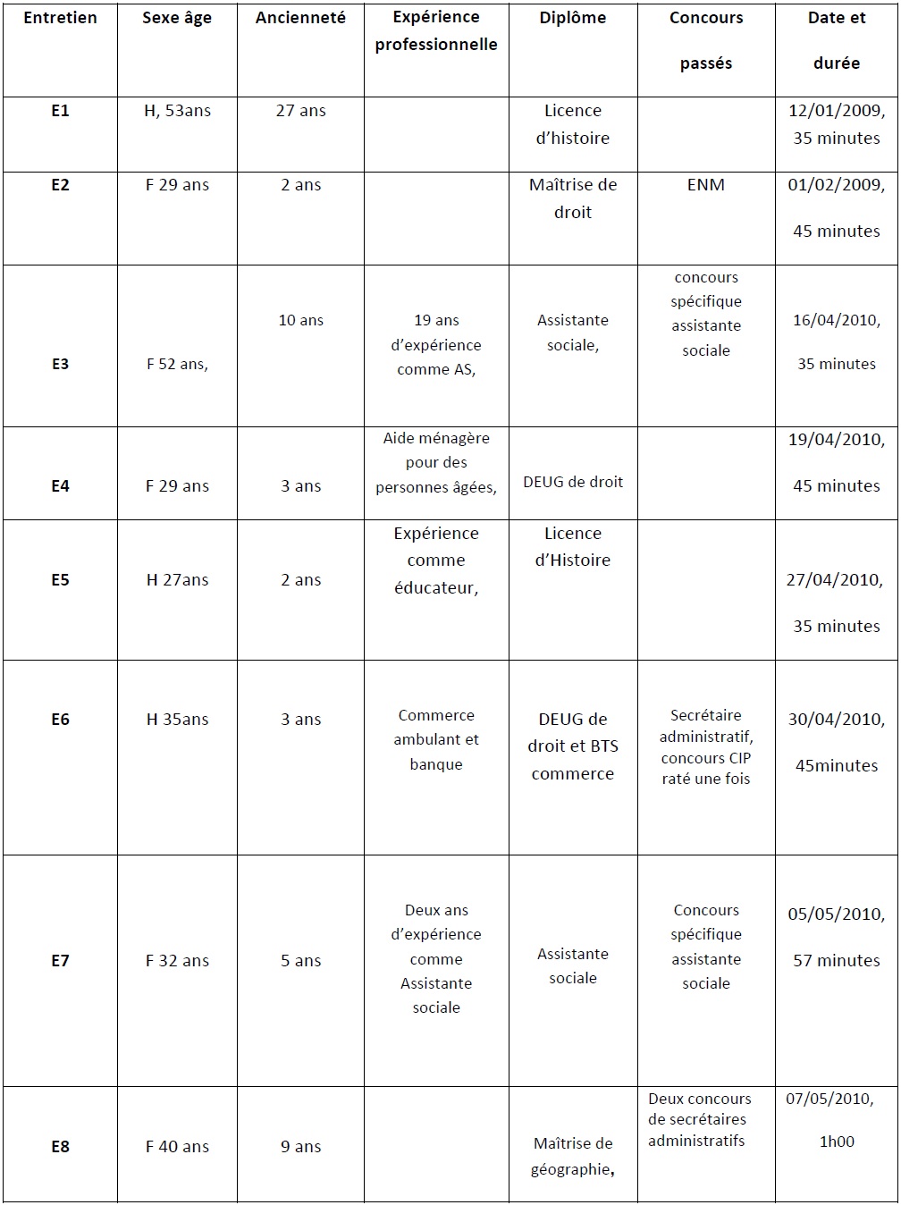 Annexe 1 : L’échantillon admin 13 ans ago Entretiens au sein du SPIP93 : n =15 Entretien hors du SPIP93 n=2 Entretiens Organisations syndicales et Associations n= 3 Page suivante : Annexe 2 : La grille d’entretienRetour au menu : DE LA REINSERTION A LA PREVENTION DE LA RECIDIVE : QUEL PROCESSUS DE PROFESSIONNALISATION POUR LES CONSEILLERS PENITENTIAIRES D’INSERTION ET DE PROBATION ?