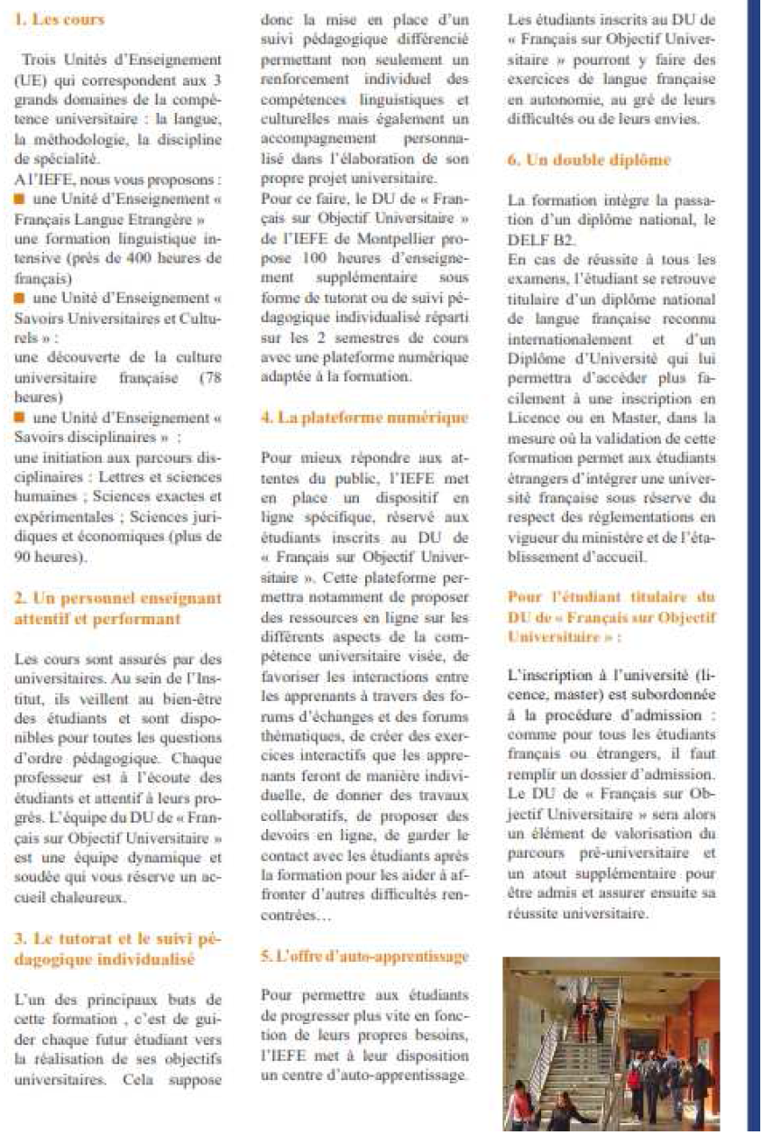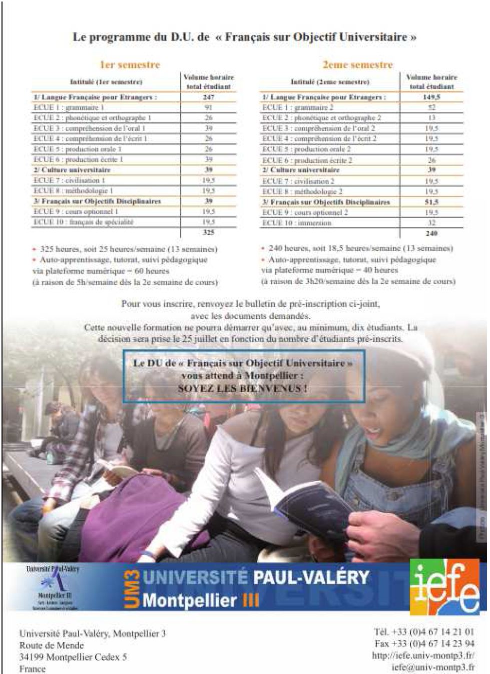 ANNEXE 1 : Maquette du DU de FOU de l’IEFE de Montpellier 3 admin 13 ans ago Page suivante : ANNEXE 2 : Guide d’entretien semi-directif pour les enseignantsRetour au menu : PRÉPARATION AUX ÉCRITS UNIVERSITAIRES EN FRANÇAIS DES ÉTUDIANTS ÉTRANGERS AVEC UN DISPOSITIF MULTIMÉDIA EN FRANÇAIS SUR OBJECTIF UNIVERSITAIRE