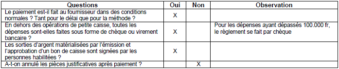 Objectif 6 : S’assurer que les paiements par caisse sont justifiés et dûment autorisés