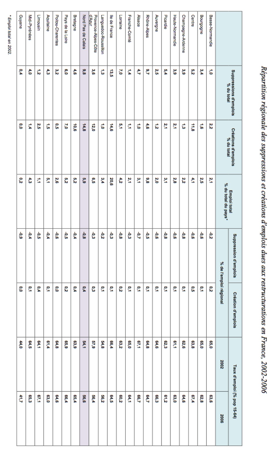 ANNEXE 1 : Repartition regionale des suppressions et creations d’emplois dues aux restructurations en France, 2002-2006, Projet AgirE Rapport Final, Mai 2008.