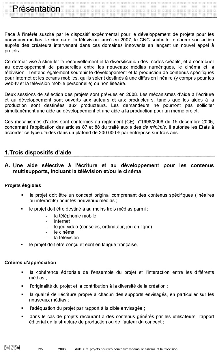 Annexe 11 : Descriptif du fonds « Nouveaux médias » du CNC admin 13 ans ago Retour au menu : Création d’une société de production de web documentaires et développement de la collection « Dans les coulisses…. »