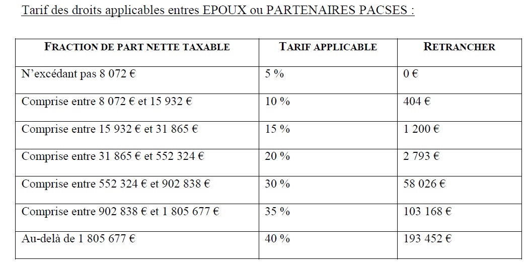 Annexe 11 : Tarif des droits de mutation à titre gratuit applicables à compter du 1er janvier 2011 admin 13 ans ago Retour au menu : Assurance vie et libéralité