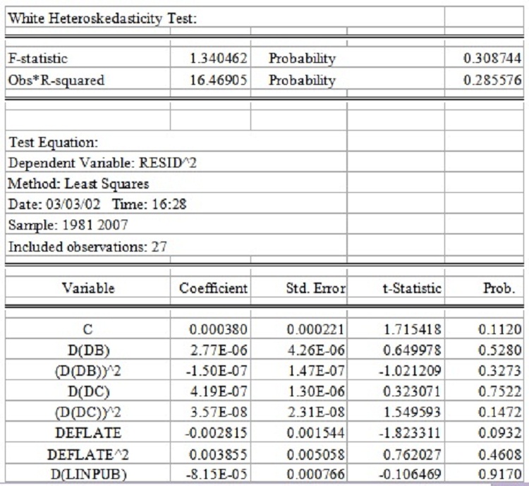 ANNEXE 11 : TEST D’HETEROSCEDASTICITE SUR LES RESIDUS DE COURT TERME