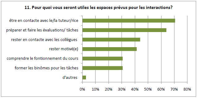 Annexe 13 : Pertinence des espaces prévus pour les interactions admin 13 ans ago Page suivante : Annexe 14 : Attentes des apprenants à propos du coursRetour au menu : Gestion des interactions dans un dispositif hybride : rôles et stratégies des tuteurs. Le cas du présentiel réduit de l’Alliance française de La Havane
