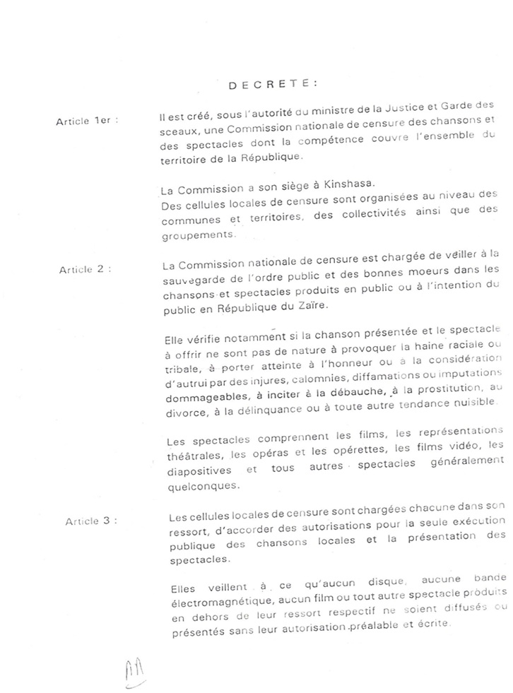 Annexe 2 : DECRET N°:0003 du 23 Février 1996 admin 13 ans ago Retour au menu : PROBLEMATIQUE DE LA REFERENCE CULTURELLE DANS LES PUBLICITTES DE KINSHASA