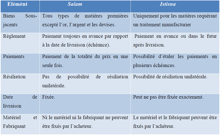Annexe 2 : Différence entre Salam et Istisna