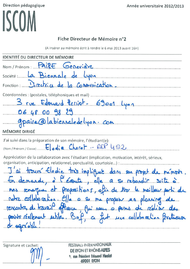 Annexe 2 : Fiche n°2 directeur de mémoire admin 13 ans ago Page suivante : Annexe 3 : Questionnaire d’enquête auprès des 18-26 ansRetour au menu : La communication face aux pratiques culturelles des 18-26 ans