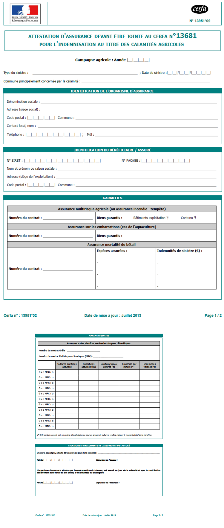 Annexe 2 : Formulaire d’attestation d’assurance pour l’indemnisation au titre des calamités agricoles