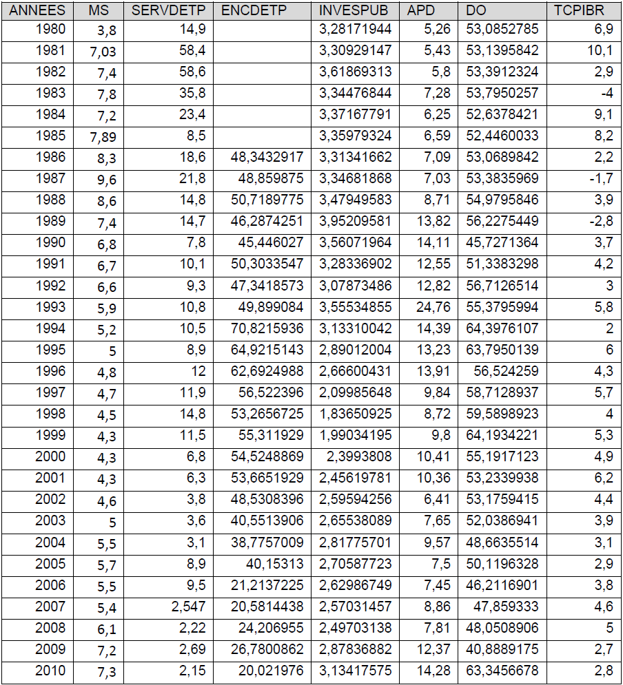 ANNEXE 2 : Les données de l’étude : Modèle d’investissement public