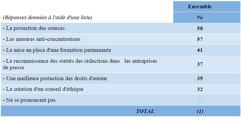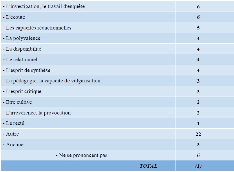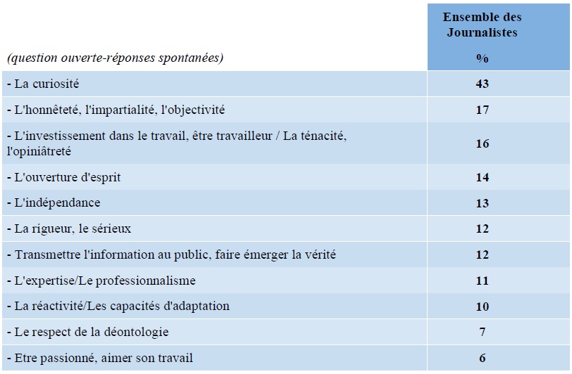 QUESTION : Selon vous, quels sont les trois qualités principales des journalistes ?