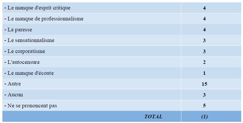 QUESTION : Selon vous quels sont les trois défauts principaux des journalistes ?