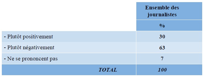 QUESTION : Selon vous, ces dernières années, l’exercice de votre métier de journaliste a-t-il évolué plutôt positivement ou plutôt négativement ?