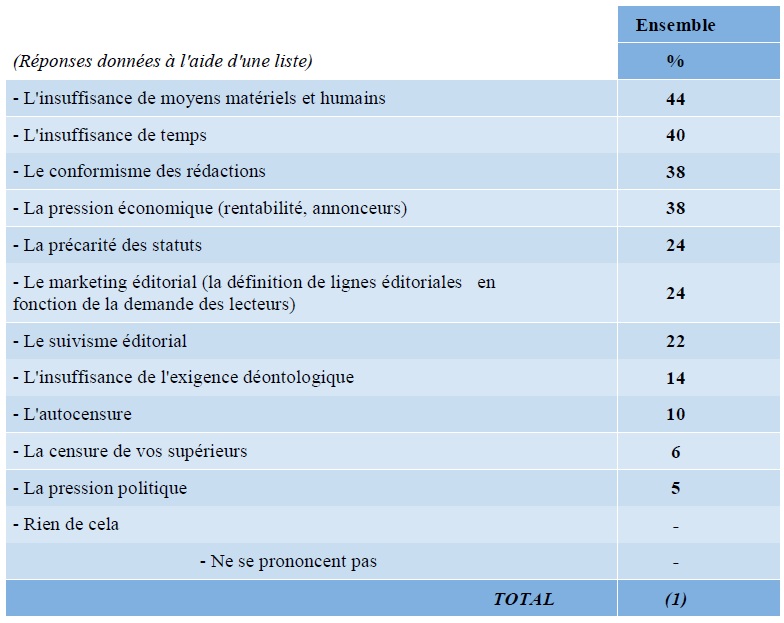 Les principales atteintes à la qualité de travail des journalistes