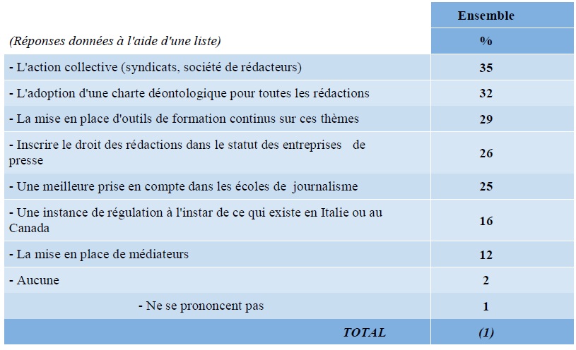 (1) Total supérieur à 100, les interviewés ayant pu donner plusieurs réponses