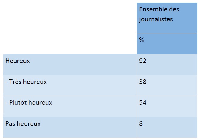 QUESTION : Diriez-vous qu’aujourd’hui vous êtes très heureux, plutôt heureux, plutôt pas heureux ou pas heureux du d’être journaliste ?