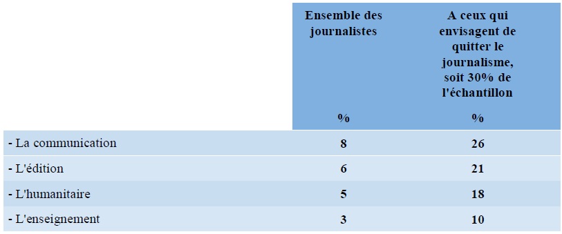 QUESTION : Envisagez-vous de quitter le journalisme avant la fin de votre activité professionnelle ?