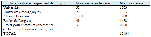 Tableau illustratif 1 : Chiffres concernant l’enseignement du français : année scolaire 2010-2011.