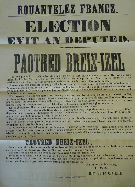 Annexe 3 : Affiche élections législatives de 1869 admin 12 ans ago Page suivante : Annexe 4 : « Une » de l'Océan du 9 août 1858Retour au menu : Brest et la langue bretonne au XIXe siècle : La colonie française face à l’observation de la sociolinguistique historique