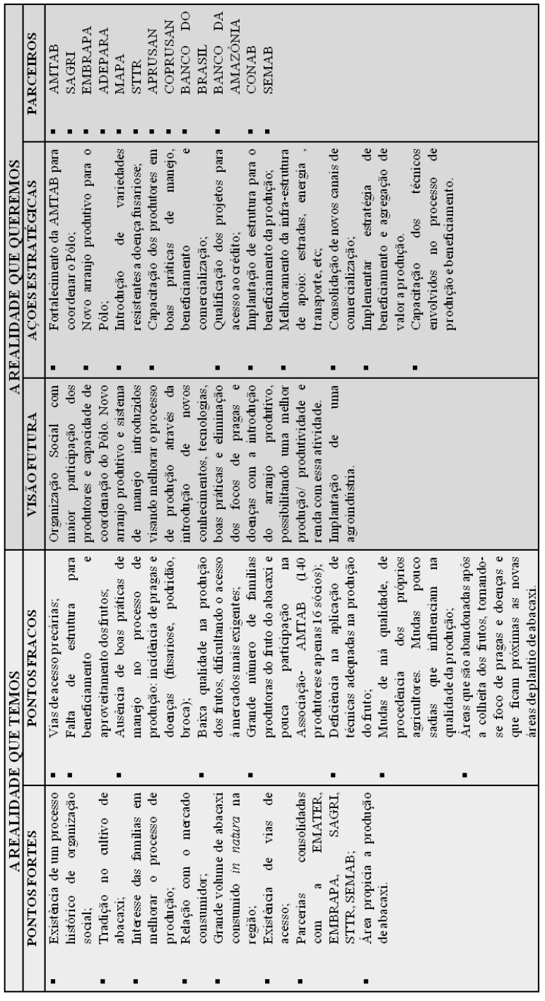 La réalité que nous avons (points forts/points faibles) et la réalité que nous voulons (vision futur/ actions stratégiques/ partenariats)