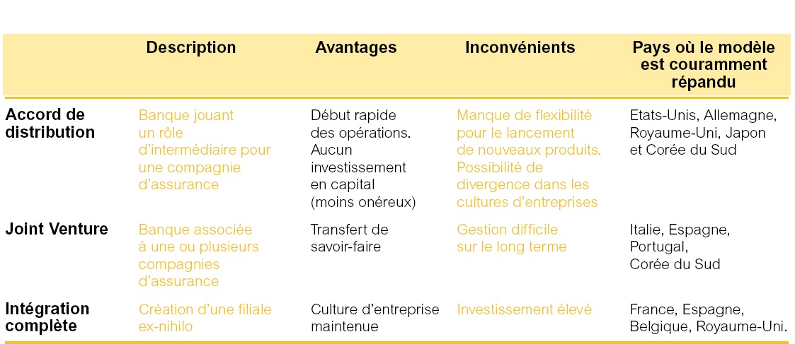 ANNEXE 3 : Les trois modèles de développement de la bancassurance (octobre 2005) admin 13 ans ago Source : SCOR Retour au menu : LA BANCASSURANCE EN FRANCE : PRINCIPES ET DEVELOPPEMENT