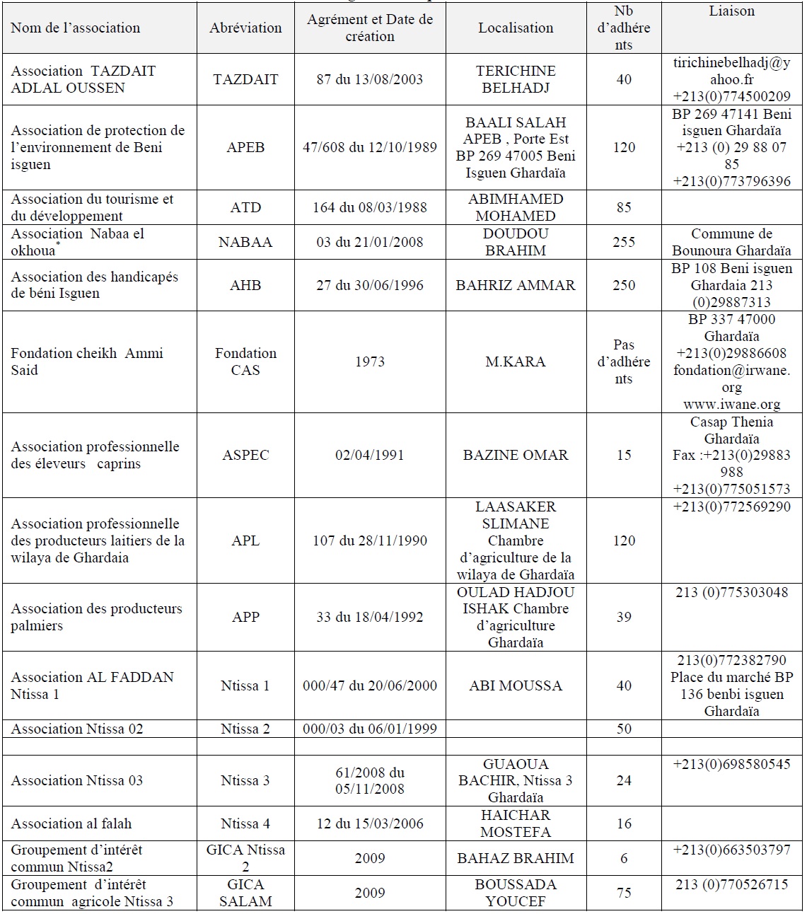 Retour au menu : EFFETS DES ACTIVITES DES ASSOCIATIONS LOCALES SUR LE PROCESSUS DE DEVELOPPEMENT DE LEUR TERRITOIRE : CAS DE LA VALLEE DU MZAB