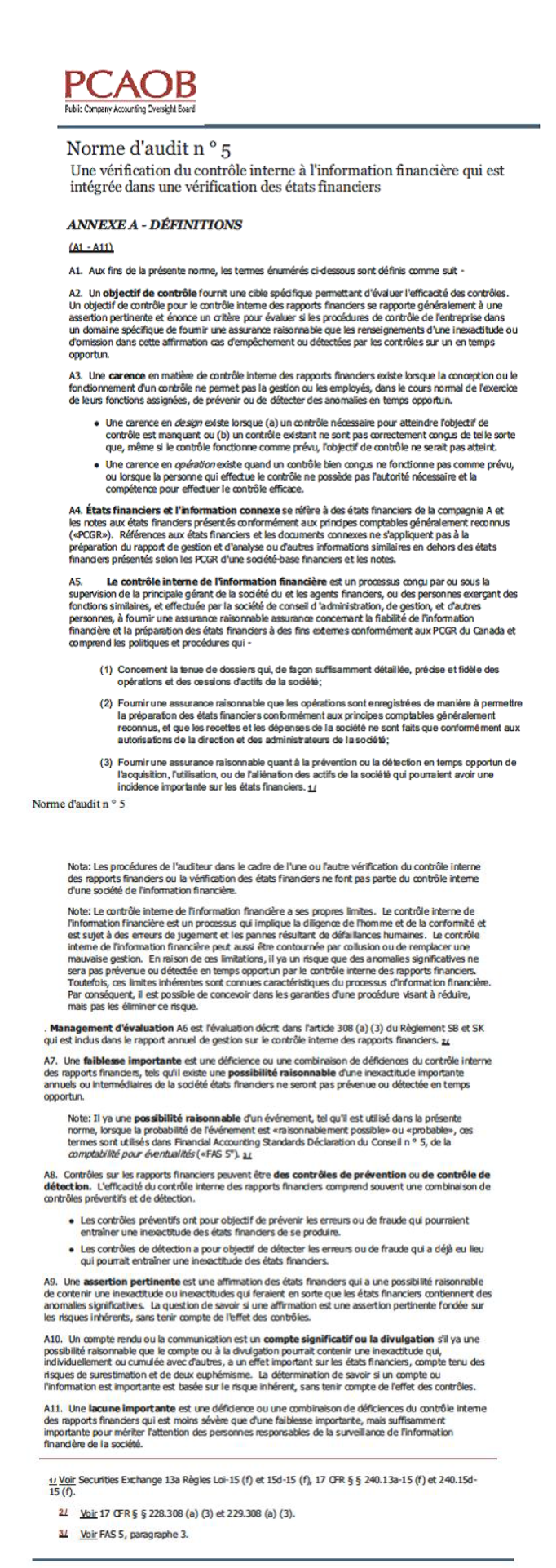ANNEXE 3– Norme d’audit interne PCAOB 5 admin 13 ans ago Page suivante : ANNEXE 4 – Maquette TDB « Gérer et développer les compétences »Retour au menu : L’audit interne, facteur de performance dans l’entreprise ?