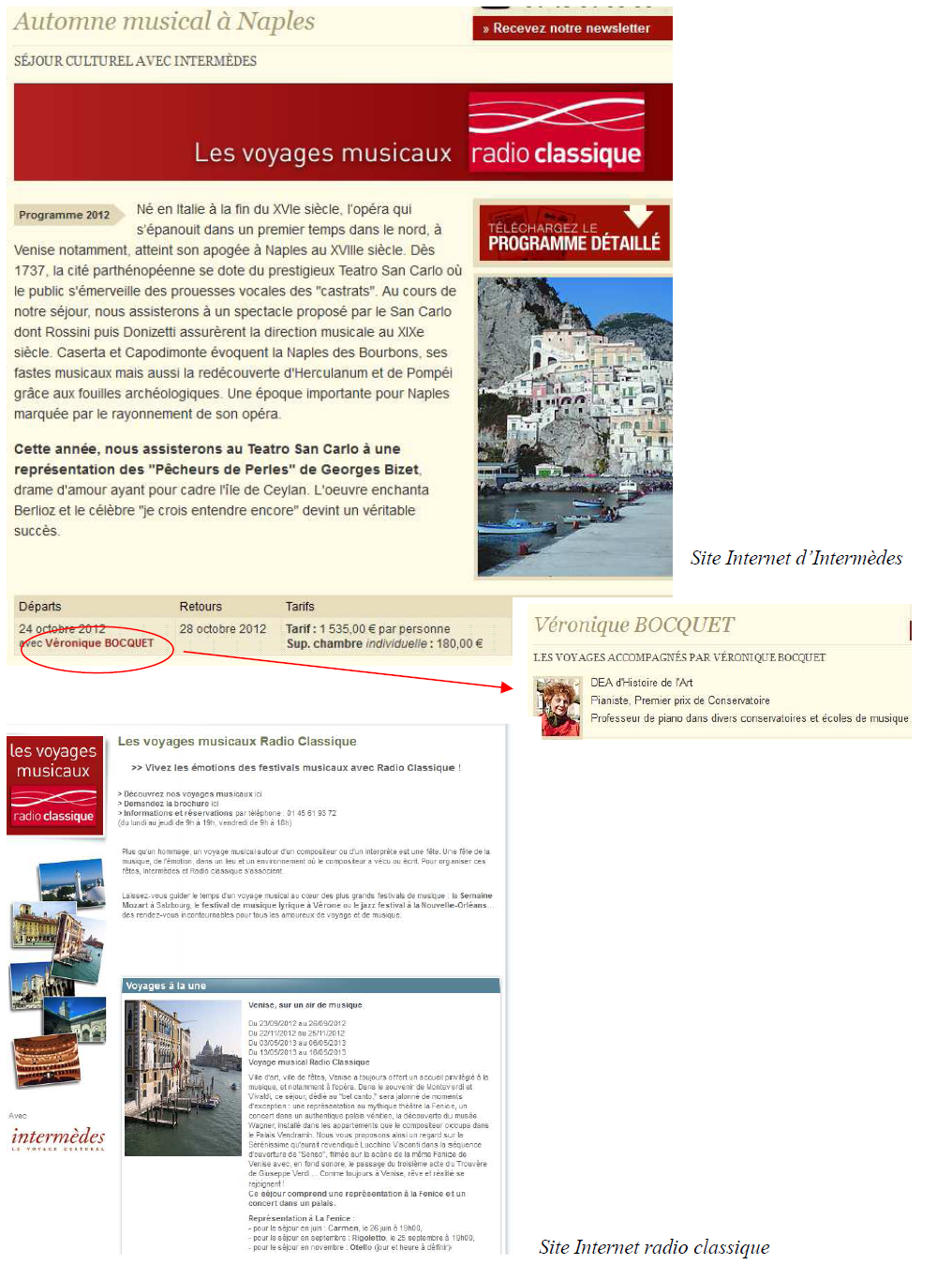 Annexe 3 : Partenariat entre l’agence de voyage Intermèdes et Radio Classique : un exemple de visibilité des partenaires sur leurs sites internet respectifs