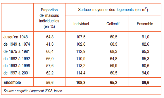 Annexe 3 : Proportion de logement individuels et surface moyenne des logements en 2002 selon la période de construction admin 12 ans ago Retour au menu : Harmonisation Européenne et Assurance Décennale Obligatoire
