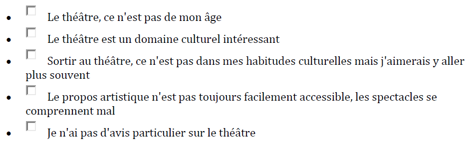 Quelles sont les phrases qui correspondent à votre état d'esprit concernant le théâtre