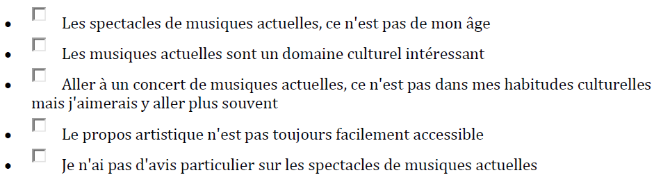 Quelles sont les phrases qui correspondent à votre état d'esprit concernant les concerts ou festivals de musiques actuelles