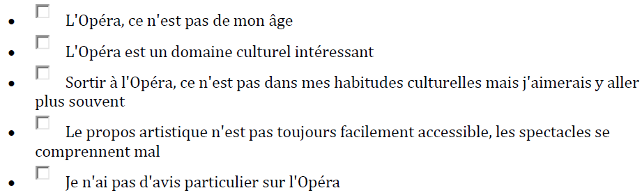 Quelles sont les phrases qui correspondent à votre état d’esprit concernant l’opéra? * (deux choix maximum)
