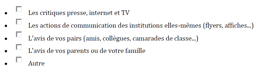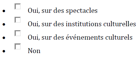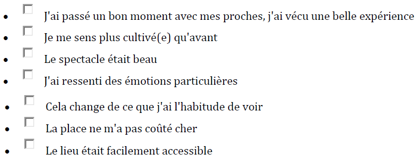Classez, par ordre de préférence affective, les cinq structures culturelles ou événements culturels vers lesquels vous allez ou iriez le plus facilement