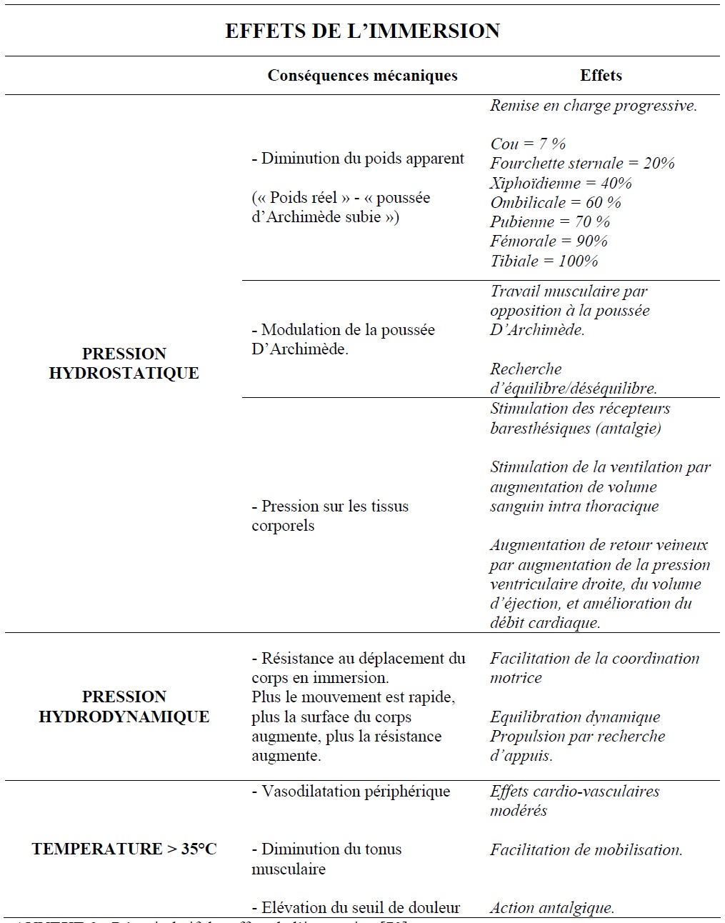 ANNEXE 3 : Récapitulatif des effets de l’immersion [79]