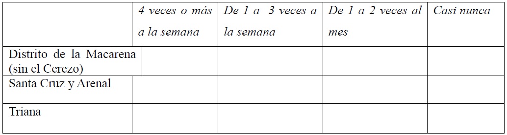 12. ¿Con qué frecuencia va en los barrios siguientes?