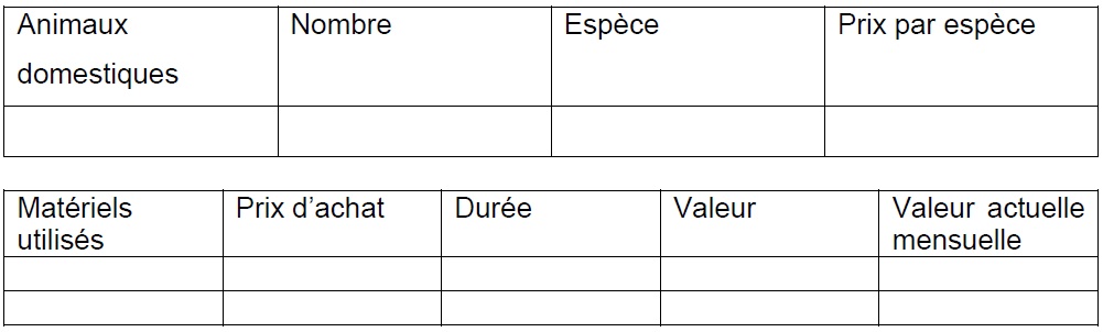 Suivi des différentes productions, commercialisations et consommations du ménage