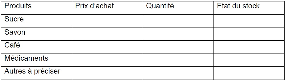 Suivi des différentes productions, commercialisations et consommations du ménage
