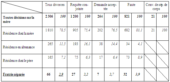 Source : L. CHAUSSEBOURG, D. BAUX, L’exercice de l’autorité parentale après le divorce ou la séparation des parents non mariés, Min. Justice, oct. 2007